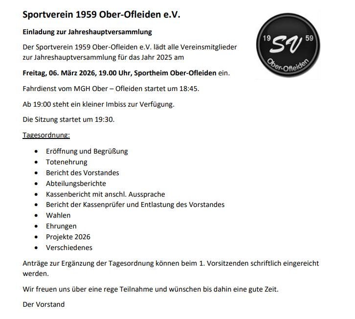 Herzlich willkommen beim SV 1959 Ober-Ofleiden